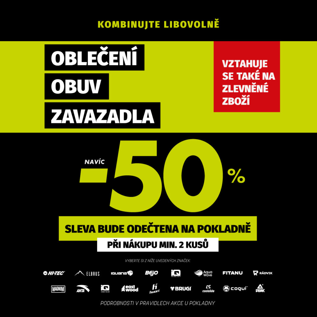 Získejte slevu 50 % při nákupu dvou produktů z těchto kategorií: oblečení obuv zavazadla